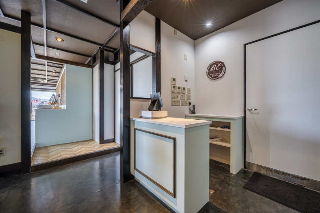 柏崎市で、蔵造風の居酒屋を部分リノベーションし、フランスの街角を思わせるベーカリー「Boulangerie Espace」へと生まれ変わらせました。