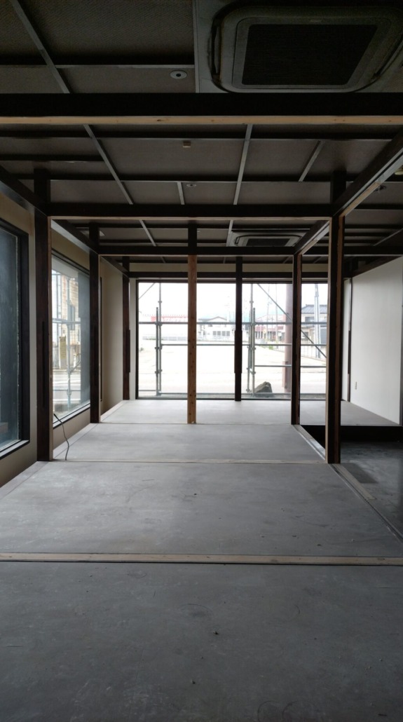 今回は既存建物を活かした部分改装のため、解体工事から内装工事まで一貫して対応しました。居酒屋時代の造作を撤去し、配管・電気設備を店舗運営に合わせて再整備。厨房機器の配置や配管も見直し、衛生面や作業効率を考慮した店舗・厨房デザインを実現しています。柏崎で店舗改装や内装工事を検討される方にも参考になる事例です。