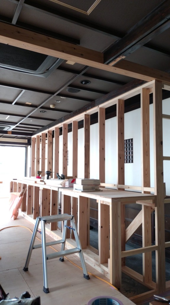 ・蔵造りの木の柱を残し、空間に風合いをプラス