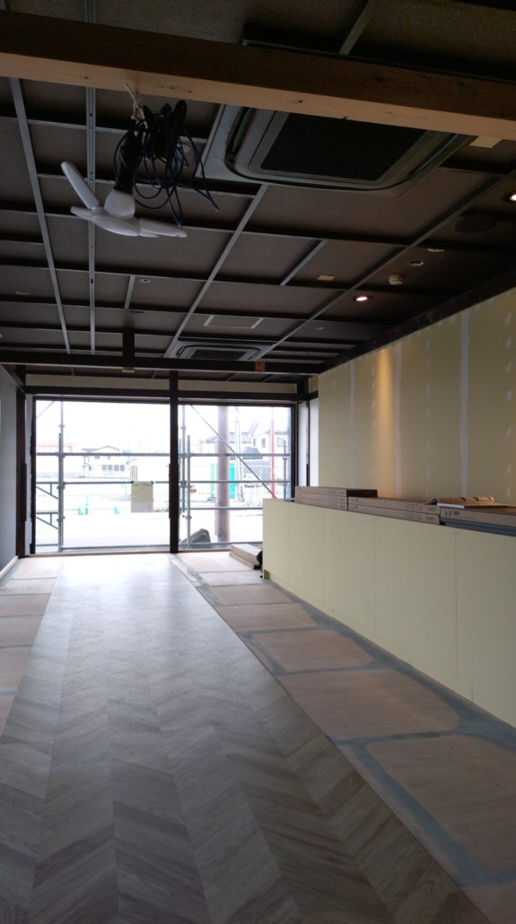 工事は全面改装ではなく、ガラス張りの客席・レジ・キッチン部分を中心に施工。